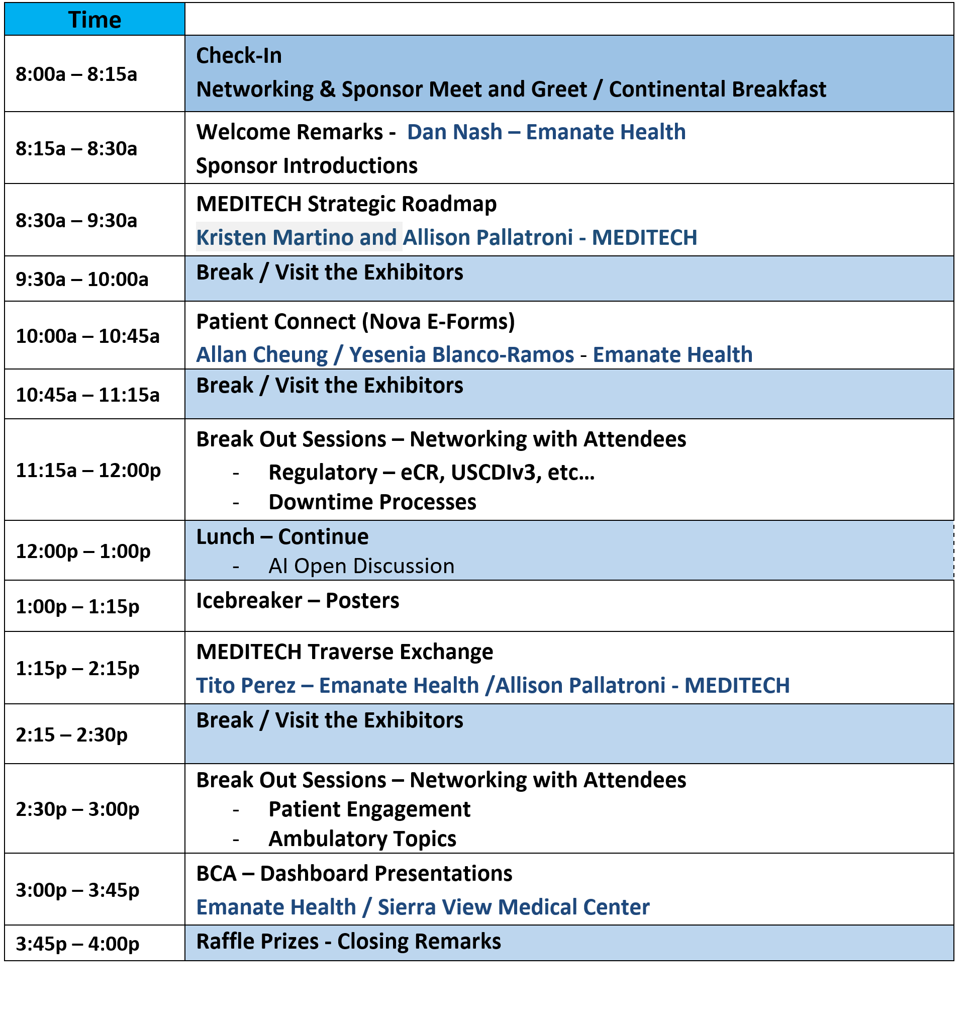 Agenda (subject to change)